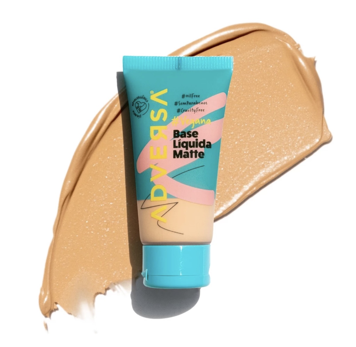 A Base Líquida Matte Vegana Adversa possui acabamento matte, efeito natural e cobertura média, que permite a construção de camadas, diferencial que possibilita maior cobertura para as apaixonadas por pele perfeita. Sua fórmula é vegana, não testada em animais e sem parabenos.